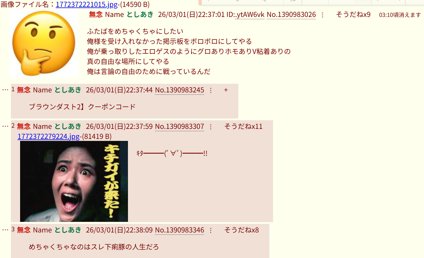 | … | 88無念Nameとしあき26/03/03(火)22:38:52No.1391427703+>なりすまし |