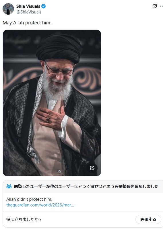 | … | 2無念Nameとしあき26/03/03(火)21:45:40No.1391413525そうだねx25 1772541940874.jpg-(15490 B) 多分次の最高指導者はこうなる |