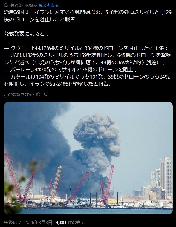 | … | 920無念Nameとしあき26/03/03(火)22:56:56No.1391432320+>なんで周辺の中東の国々まで敵に回してんだ? |