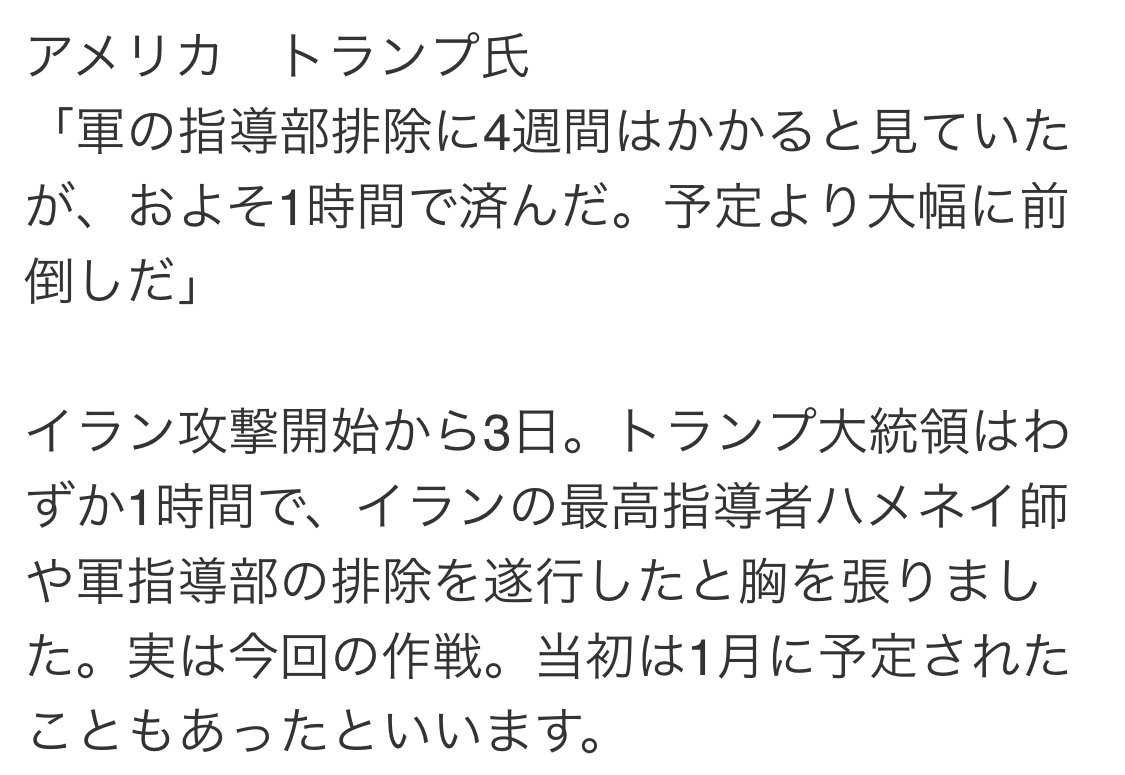 | … | 956無念Nameとしあき26/03/03(火)22:59:55No.1391433005+>なんで周辺の中東の国々まで敵に回してんだ? |