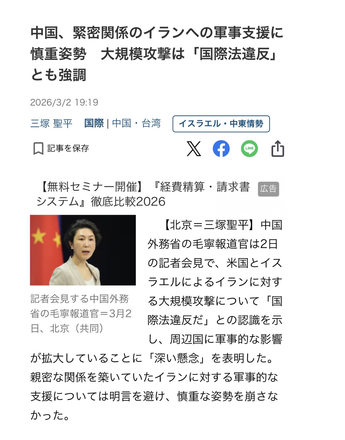 | … | 965無念Nameとしあき26/03/03(火)23:00:25No.1391433129+>中国がホルムズ海峡封鎖でイランに圧力か 米メディア報道、LNG運搬船の航行継続求める |