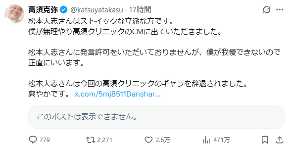 | … | 18無念Nameとしあき26/03/04(水)05:39:00No.1391468113そうだねx1これ高須も松本馬鹿にしてるだろww |