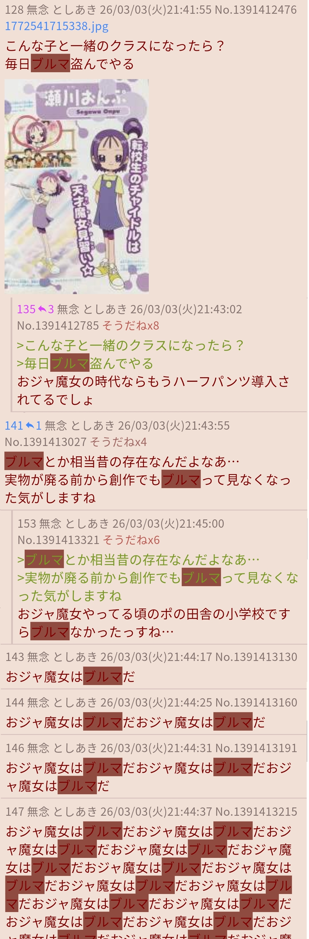 | … | 730無念Nameとしあき26/03/04(水)14:14:53No.1391530280そうだねx6>自治厨たち頼むブル兄スレで暴れてるせんせぇとVガン粘着を倒すのに協力してください |