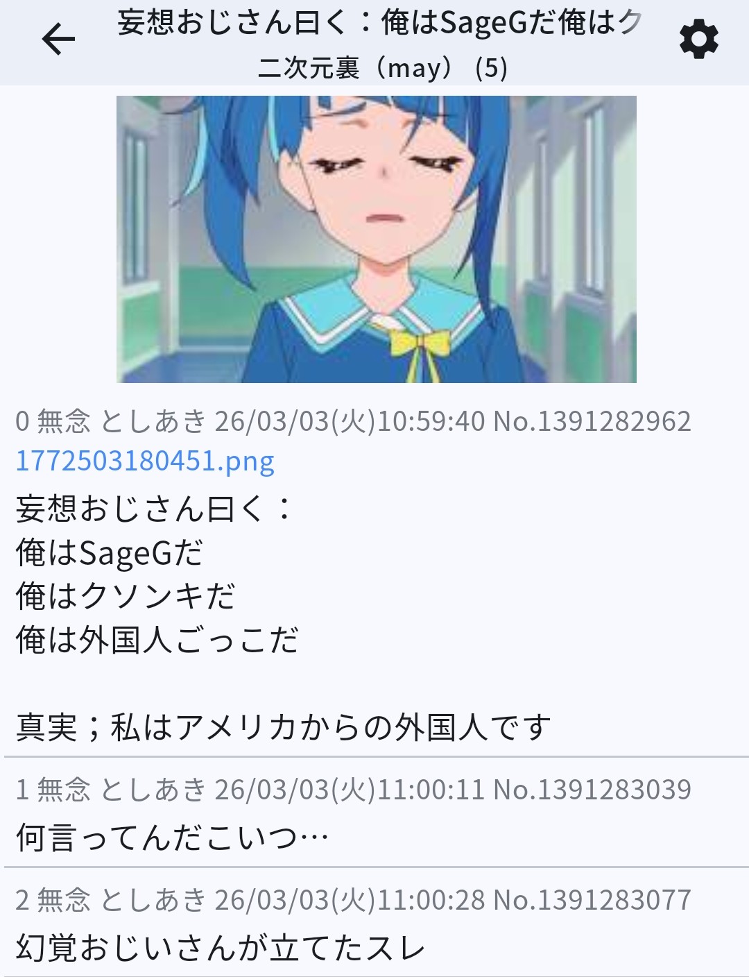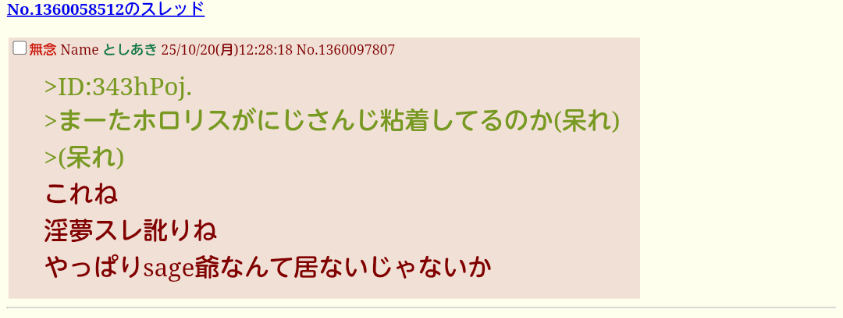 | … | 769無念Nameとしあき26/03/04(水)15:10:47No.1391538619そうだねx3 1772604647782.png-(582485 B) >まあ河村連呼はsage爺とみて間違いない |
