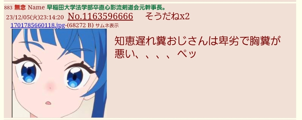 | … | 694無念Nameとしあき26/03/04(水)13:22:32No.1391521645そうだねx5 1772598152295.jpg-(90390 B) >sage爺にわか乙 |