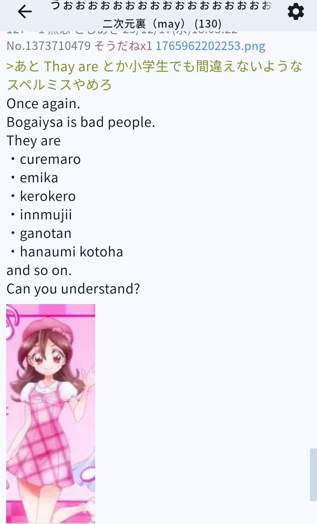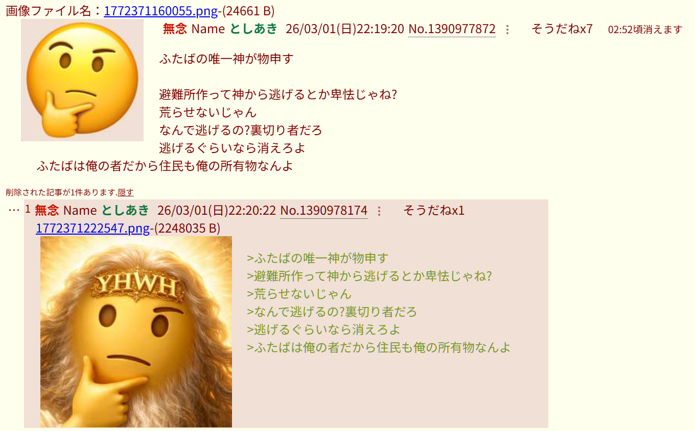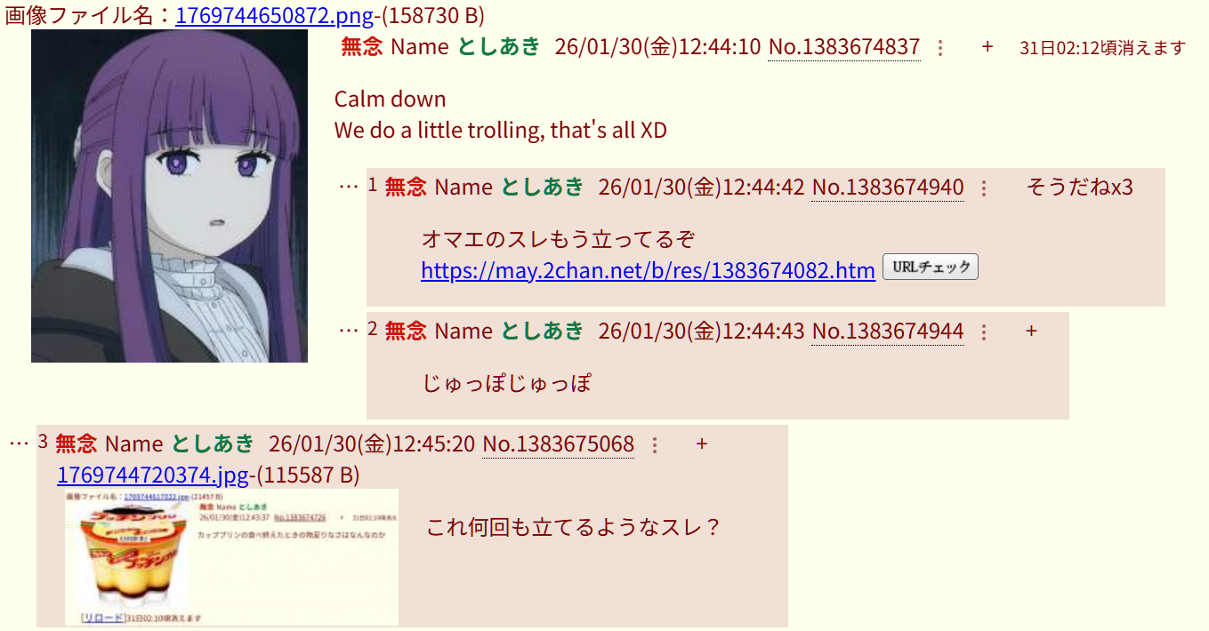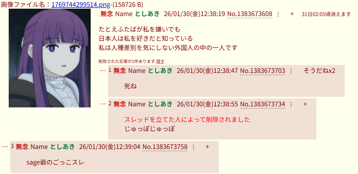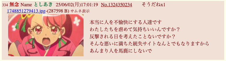 | … | 737無念Nameとしあき26/03/04(水)14:32:29No.1391532876そうだねx3>いい加減にしないと管理人に通報すんぞ |