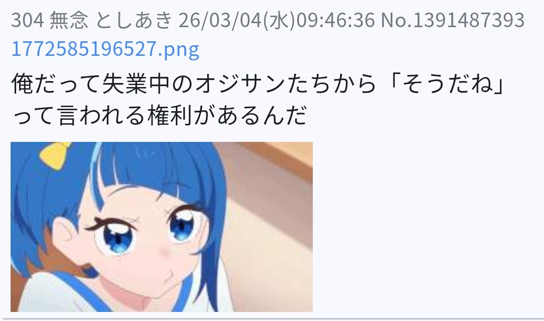 | … | 37無念Nameとしあき26/03/04(水)08:26:04No.1391478498そうだねx2>>>>クソスレ |