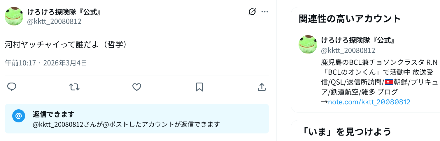 | … | 722無念Nameとしあき26/03/04(水)13:54:54No.1391527067そうだねx4>河村くんが離席してる時って寝てるわけでもリアルで用事あるわけでもなくただ「別スレの荒らしで忙しい」ってだけだからな |