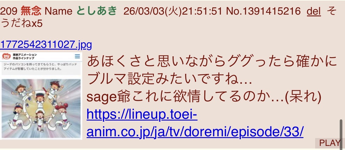| … | 696無念Nameとしあき26/03/04(水)13:24:20No.1391521968そうだねx6>1772597923079.jpg |