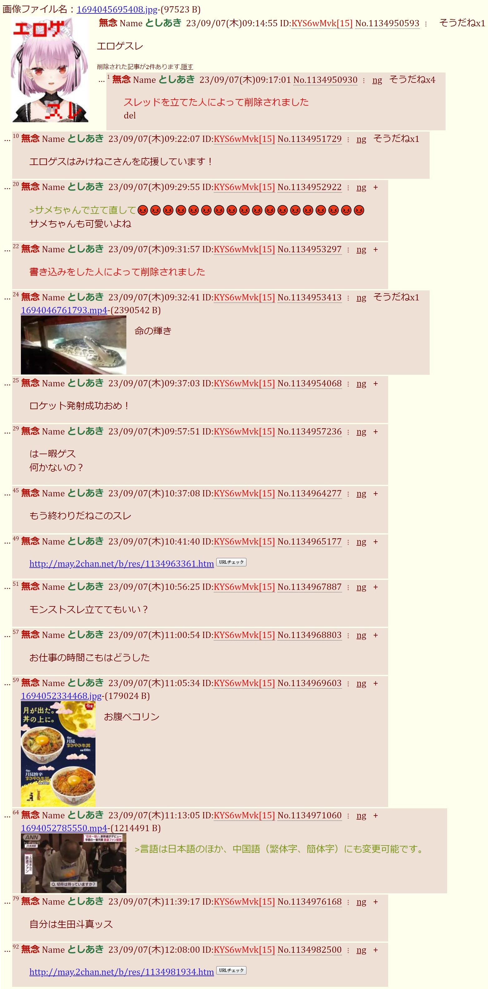 | … | 9無念Nameとしあき26/03/04(水)09:30:19No.1391485491そうだねx1https://may.2chan.net/b/res/1391478156.htm |