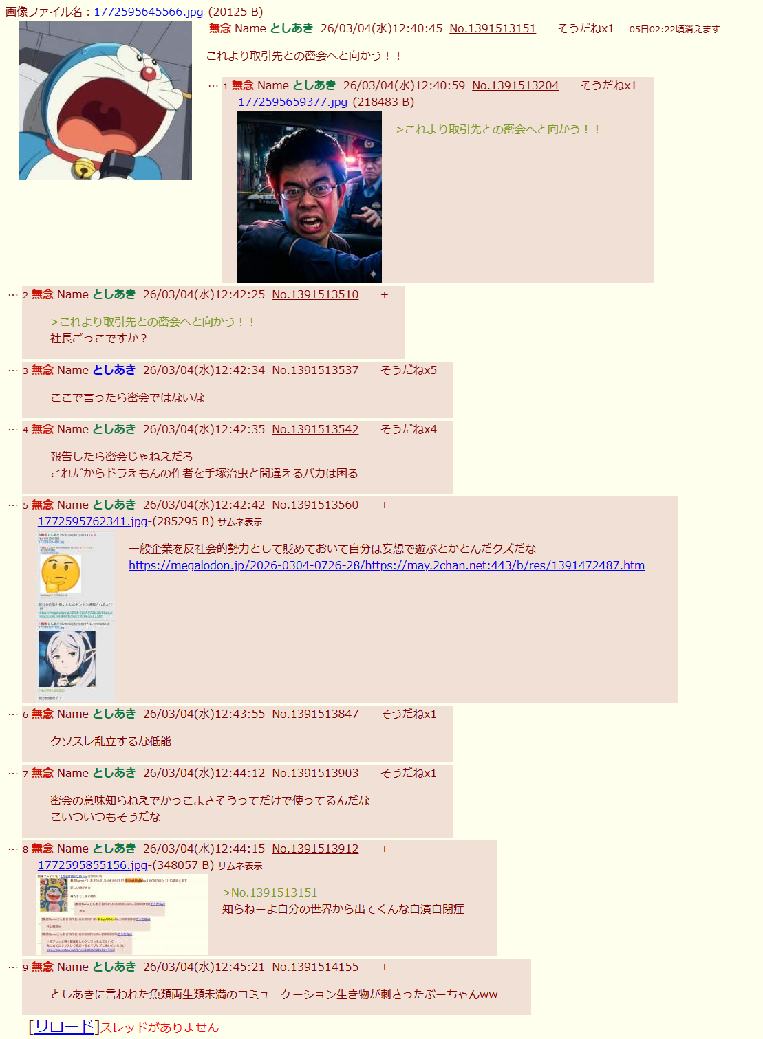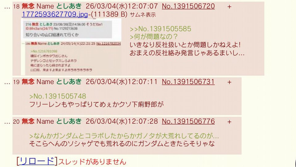| … | 114無念Nameとしあき26/03/04(水)12:57:26No.1391516952+自演即バレは言い返せないのか無能 |