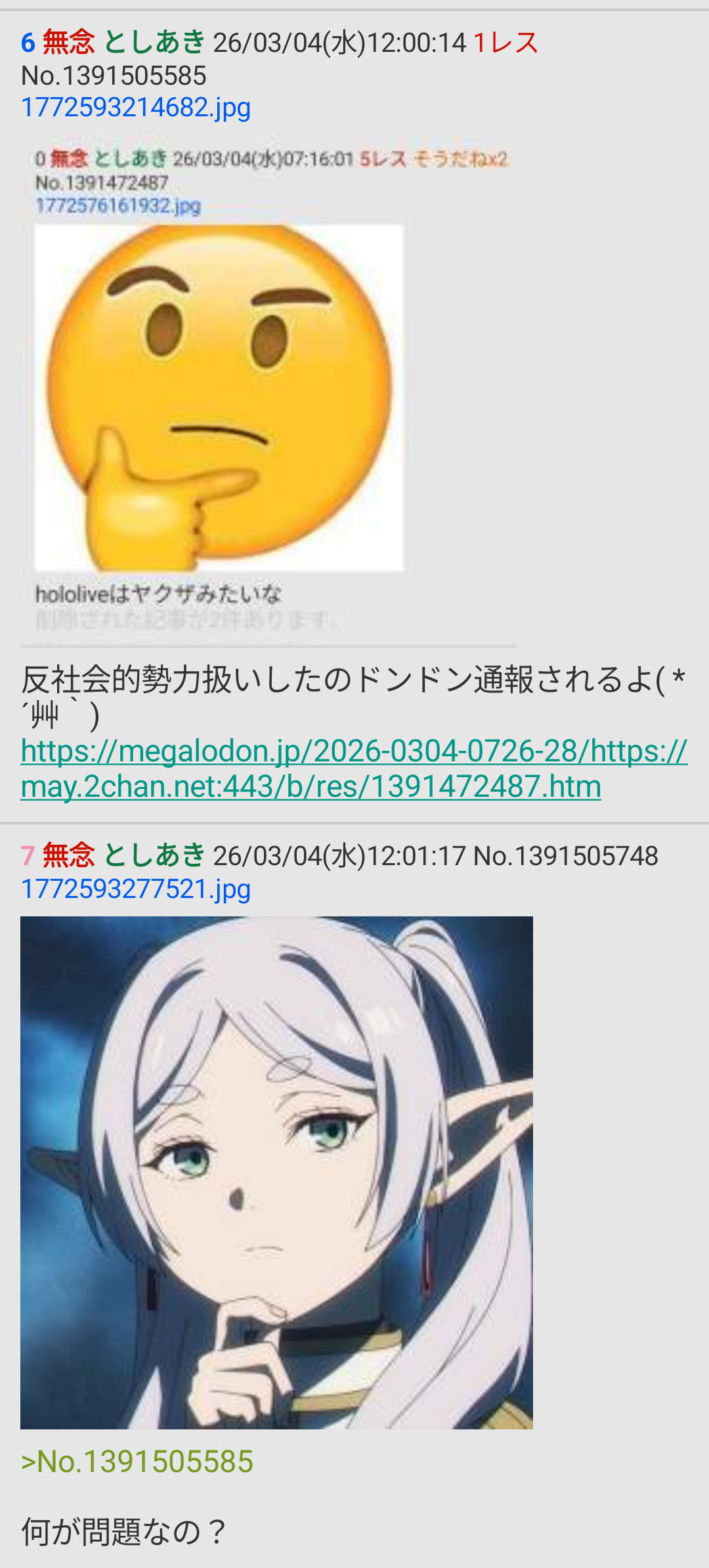 | … | 123無念Nameとしあき26/03/04(水)13:13:12No.1391519925+https://may.2chan.net/b/res/1391515624.htm |