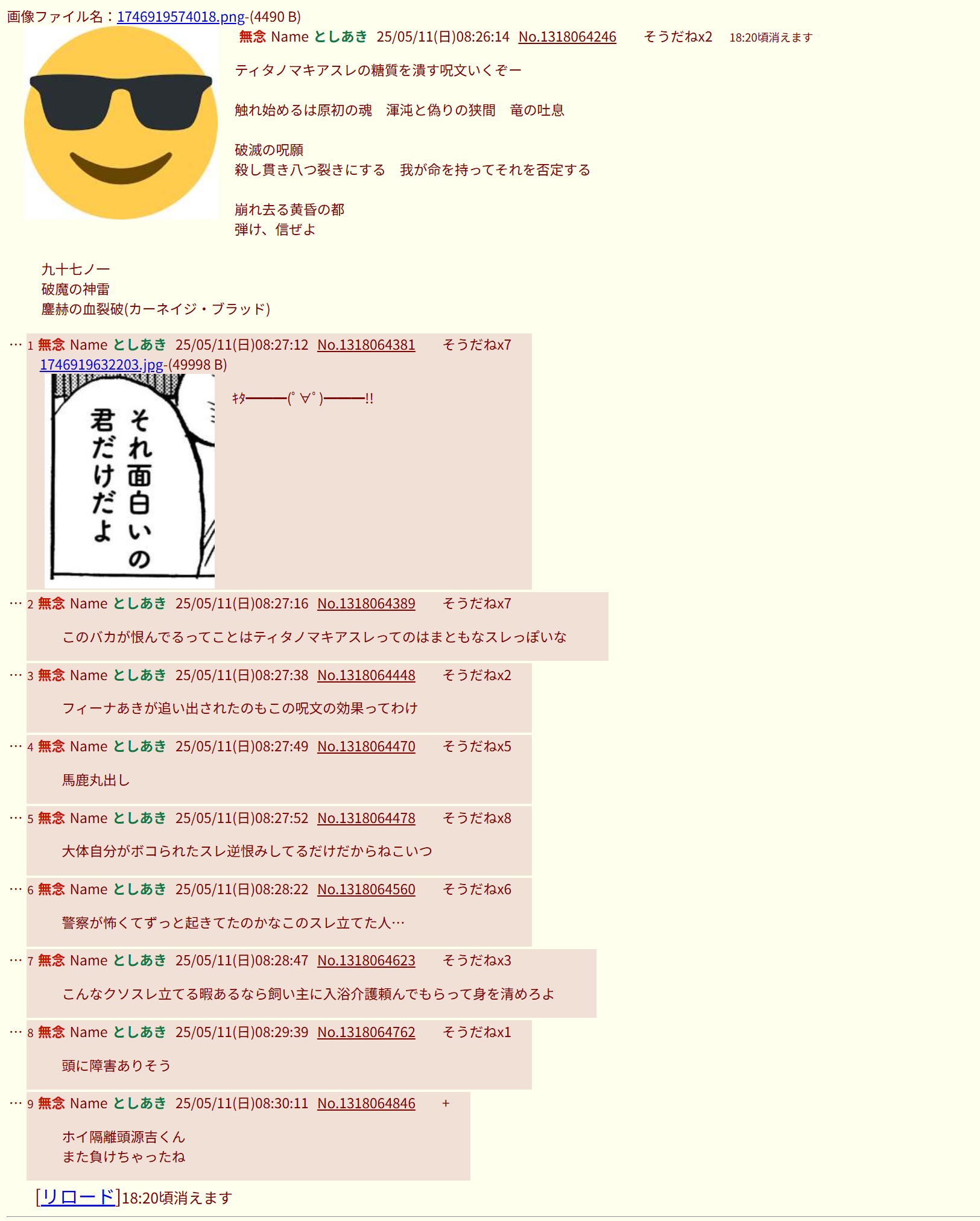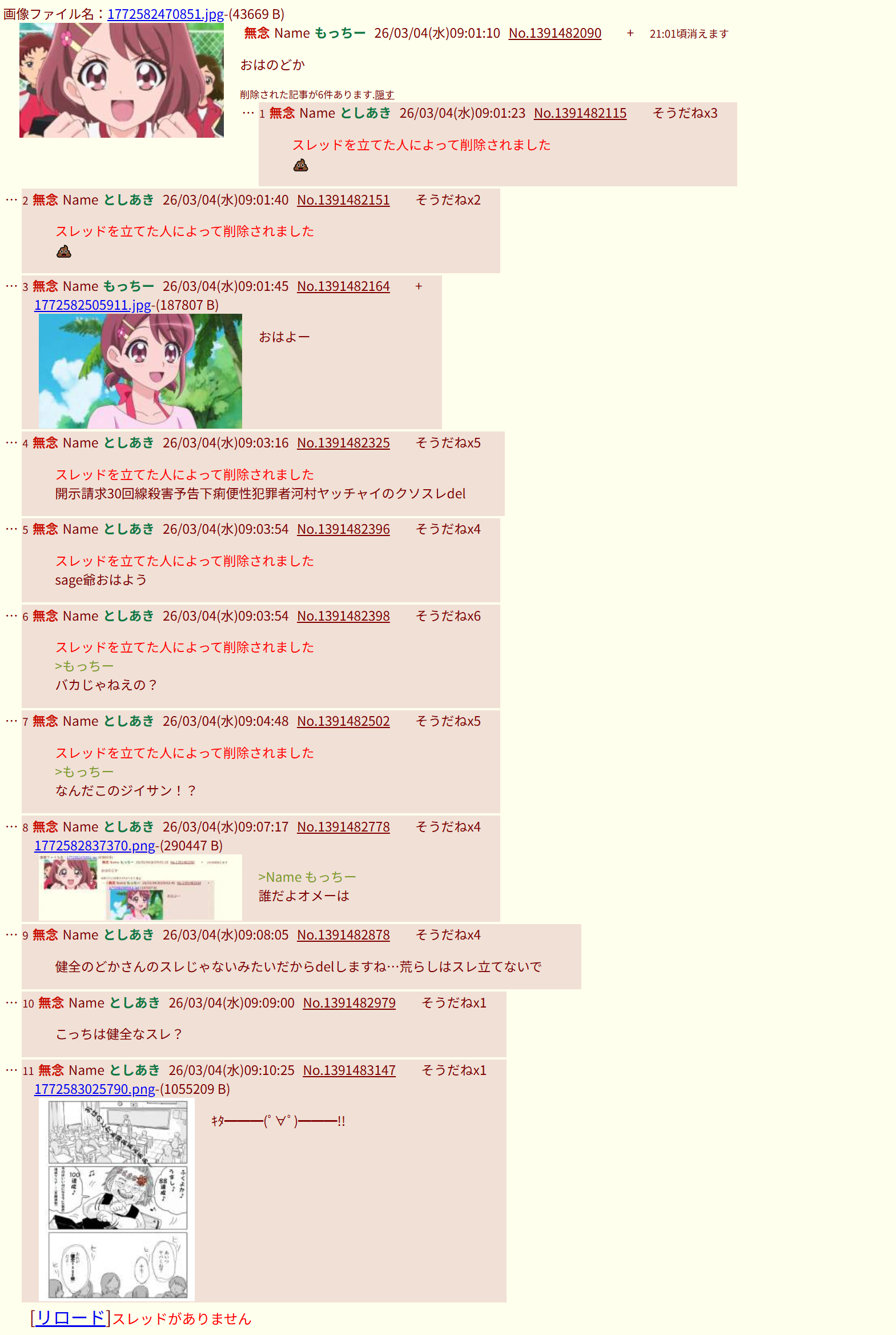 | … | 285無念Nameとしあき26/03/04(水)20:37:00 ID:TDOdOOcgNo.1391602298+>また馬鹿が別回線で来たな... |
