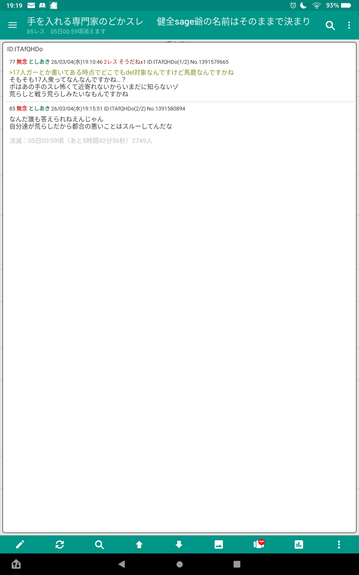 | … | 93無念Nameとしあき26/03/04(水)19:18:42 ID:fZi.kKwkNo.1391581571そうだねx4健全sage爺おはのどかやおはえりかってクソスレでブチ切れて今日も一日潰しましたね |
