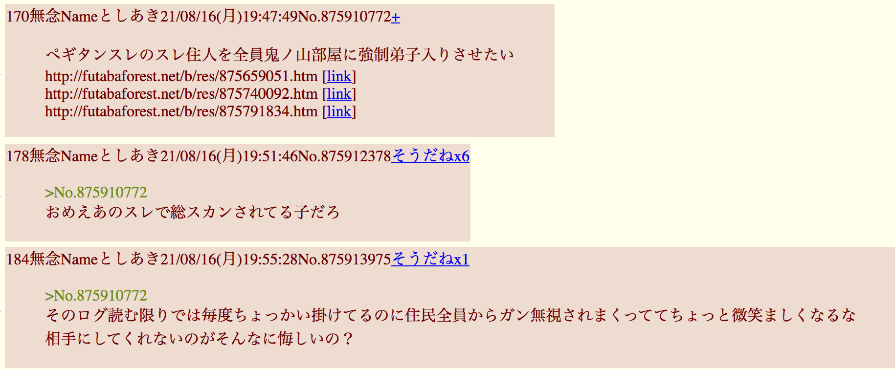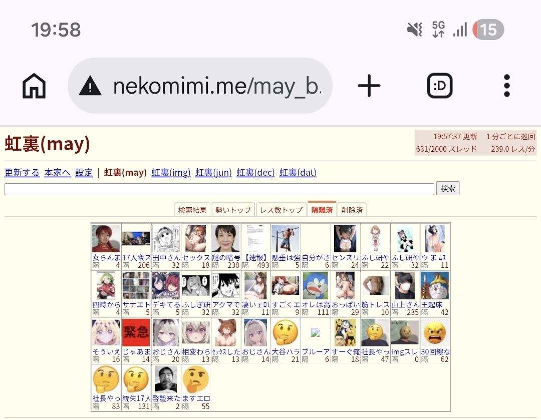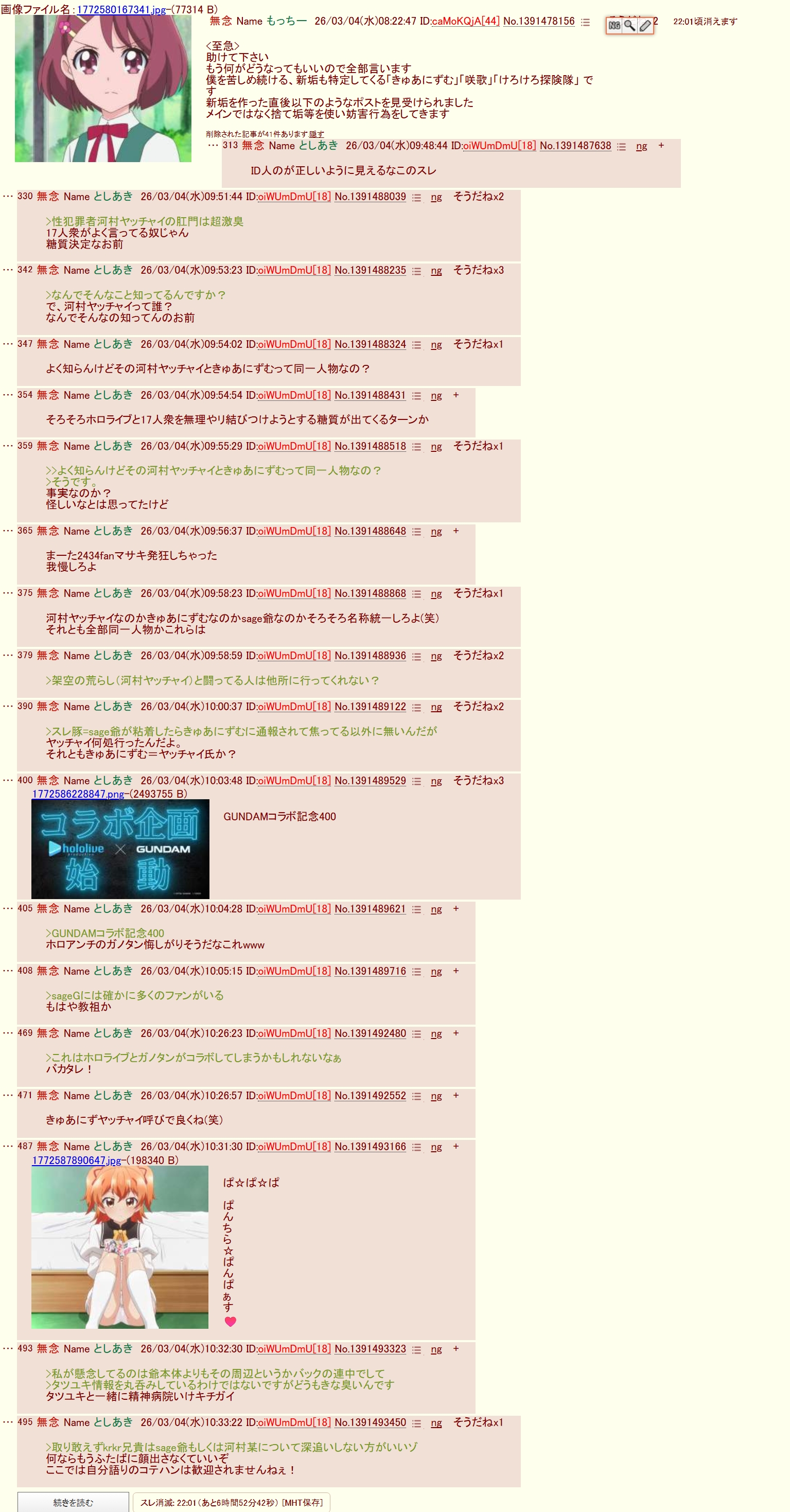 | … | 276無念Nameとしあき26/03/04(水)20:35:14 ID:TDOdOOcgNo.1391601793+荒らしがグルチャで盛り上がってるだけなんだよな |