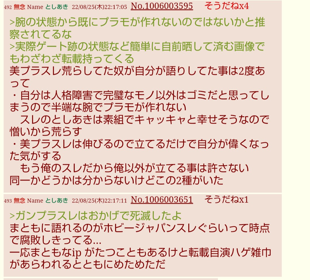 | … | 250無念Nameとしあき26/03/04(水)20:24:41 ID:JW9eyIXQNo.1391598880そうだねx6>今回は他人の立てたスレに乗り込んでるので「単発IDで2〜3レスしながら自演擁護」の派生形で「単発IDで2〜3レスしながら煽る」という行動をとってるようですね |