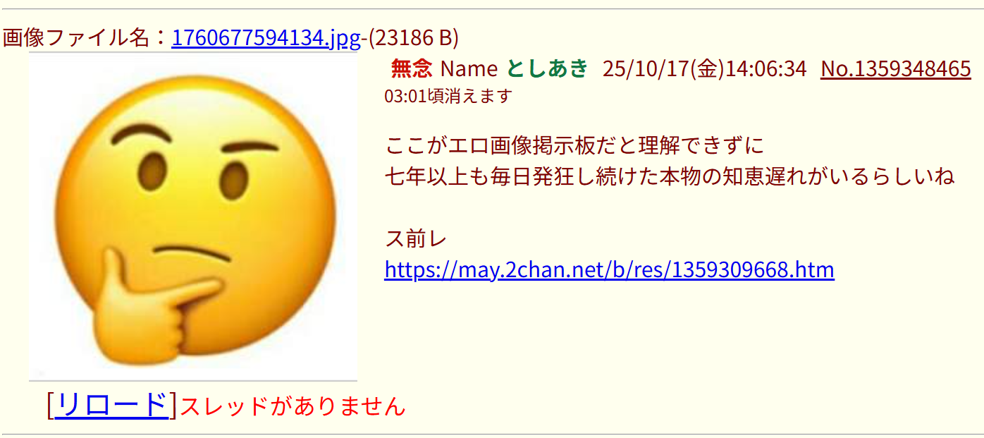 | … | 14無念Nameとしあき26/03/04(水)21:43:51No.1391621359+https://may.2chan.net/b/res/1391619080.htm |