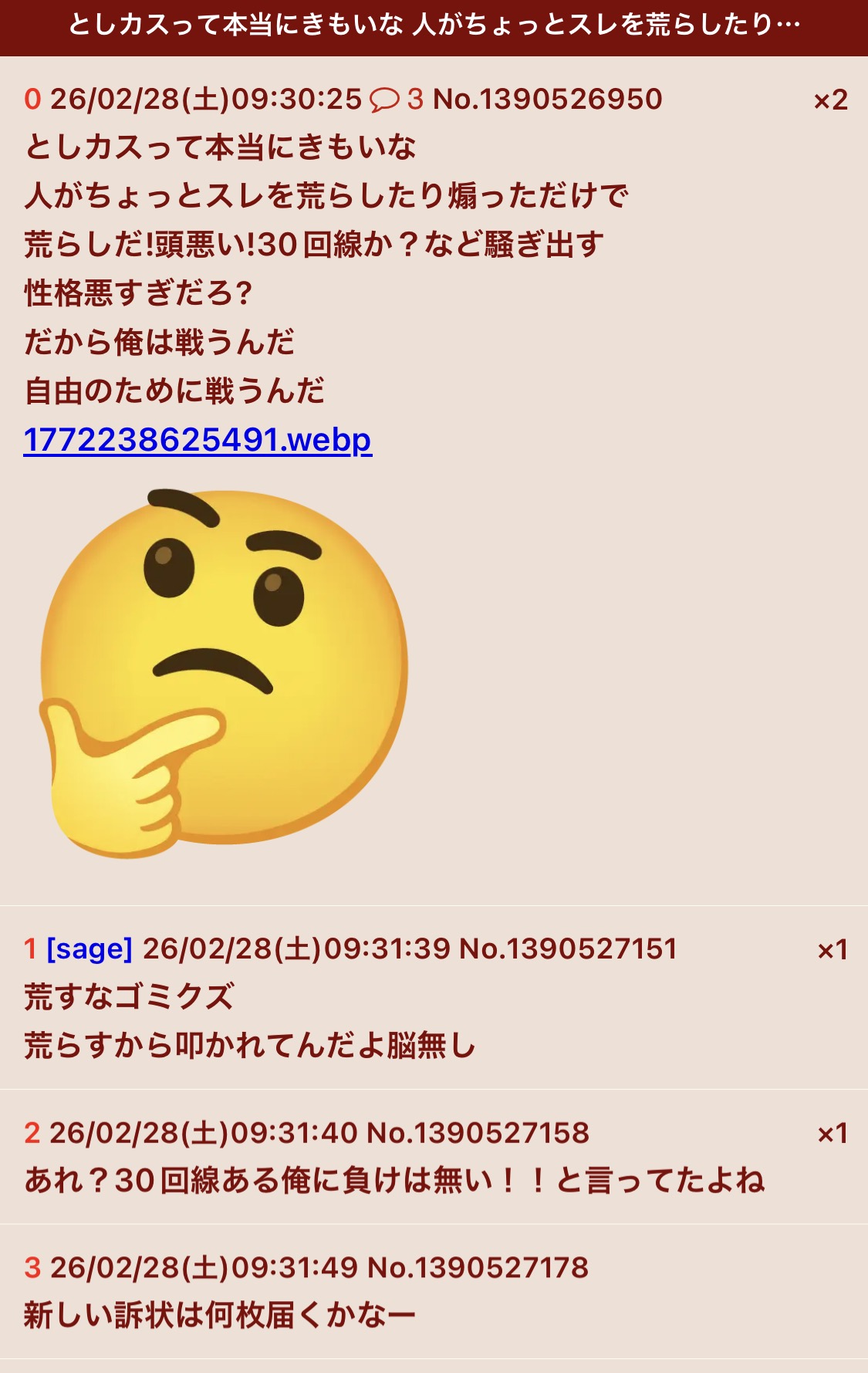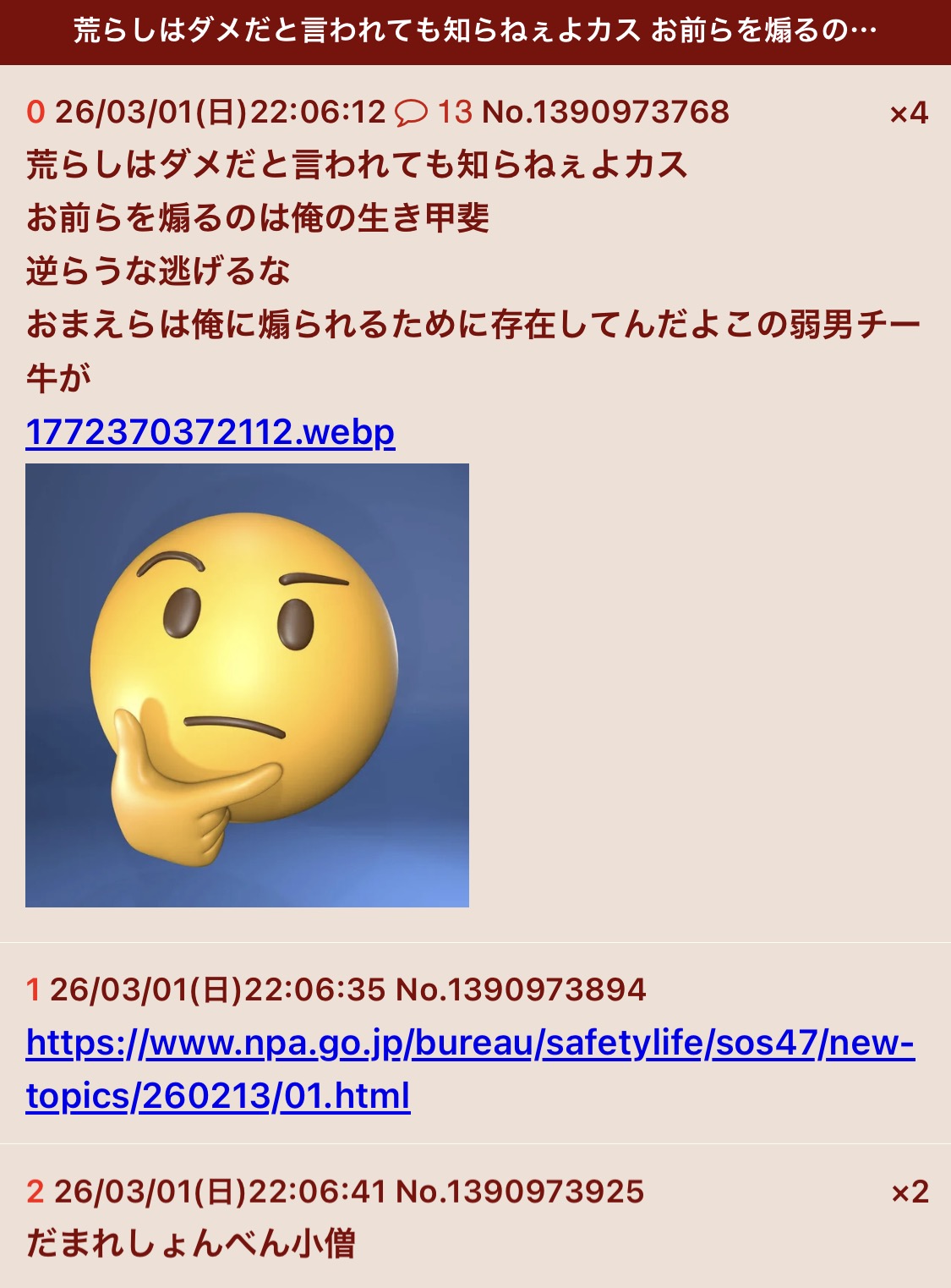 | … | 90無念Nameとしあき26/03/04(水)23:14:48No.1391645479+ 1772633688784.jpg-(288797 B) 極めて知能が低い知恵遅れの荒らしが |