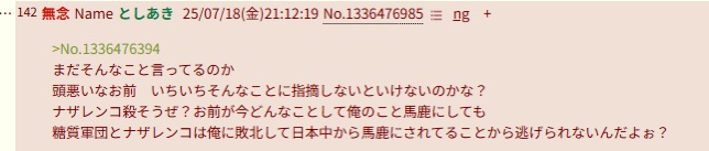 | … | 89無念Nameとしあき26/03/04(水)23:14:36No.1391645418そうだねx8>糖質って毎日こんな長文考えてるの? |