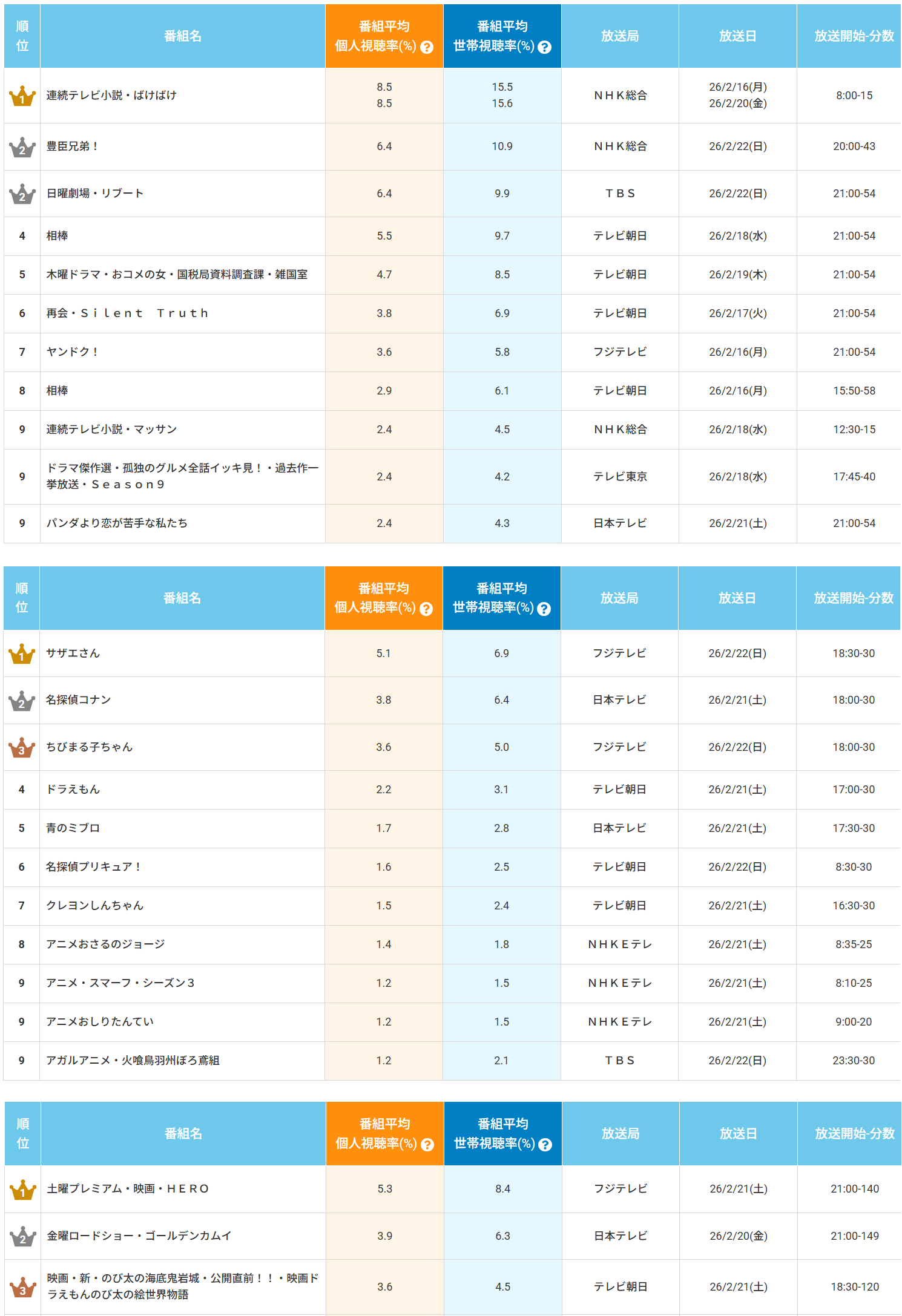 | … | 15無念Nameとしあき26/03/05(木)09:53:43No.1391699060+>ドラえもん思ったより低いと思ったがそもそもテレビ離れなのかな |