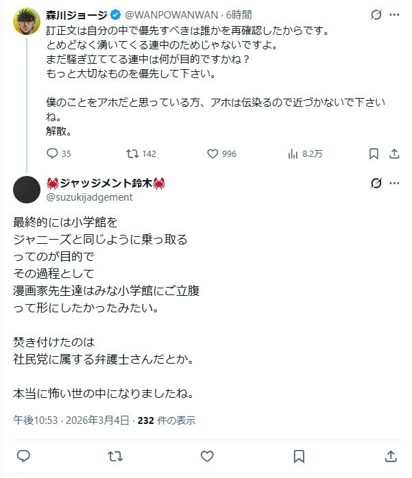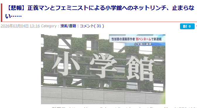 | … | 81無念Nameとしあき26/03/05(木)14:48:16No.1391746032+小学館の出来事にいっちょ噛みするからこうなる |