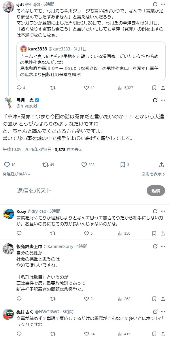 | … | 74無念Nameとしあき26/03/05(木)14:47:03No.1391745871+>高卒でずっと漫画だけ描いてただけの世間知らずがものを言うな |