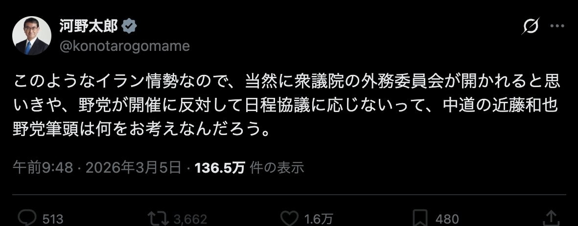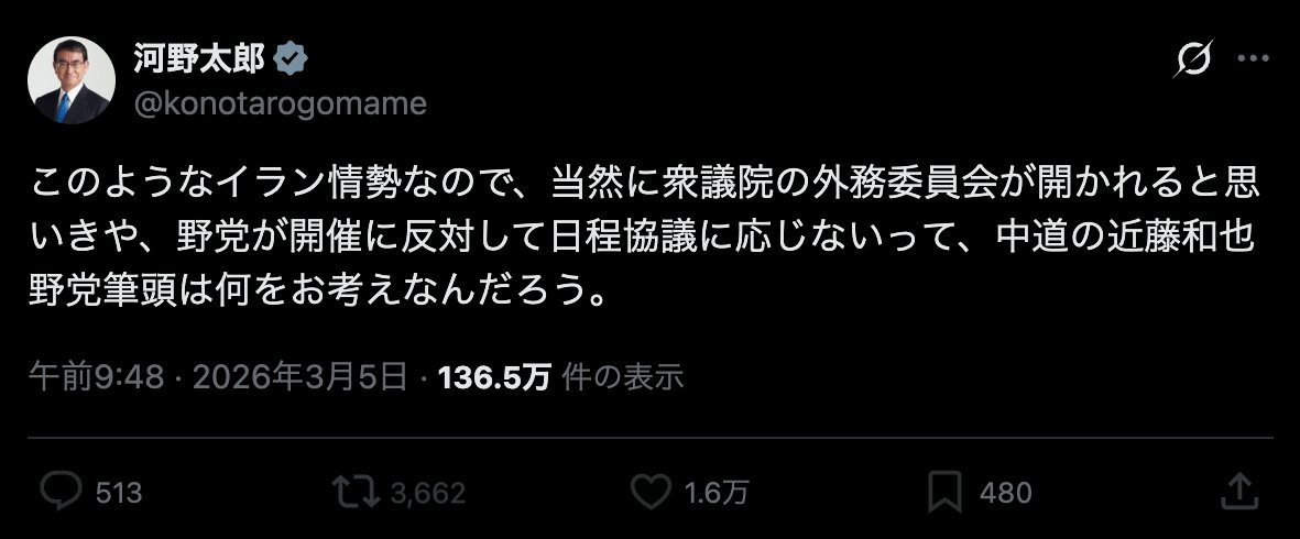 | … | 189無念Nameとしあき26/03/05(木)18:18:21No.1391780228+ 1772702301872.jpg-(111094 B) 河野が言ってる事だからってのはあるけど |
