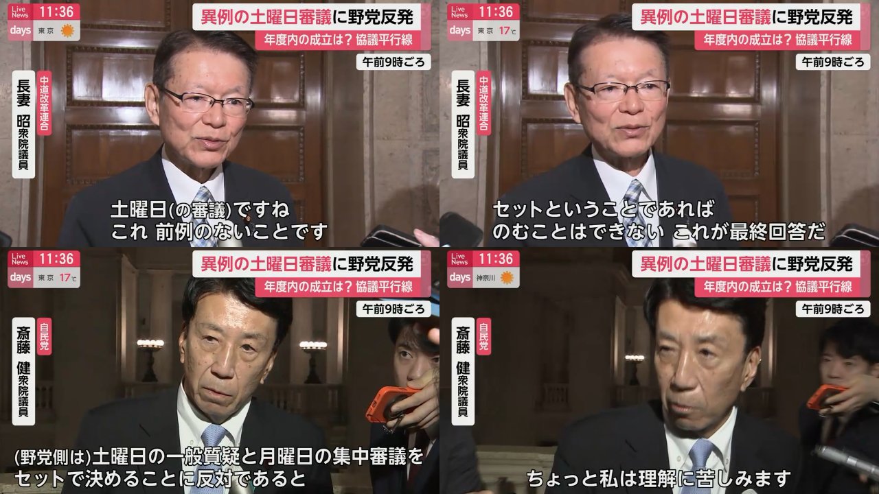 | … | 54無念Nameとしあき26/03/05(木)17:34:25No.1391771955そうだねx4>予算審議の時間がないけど土曜日まで審議する必要ある?俺らの休日は? |