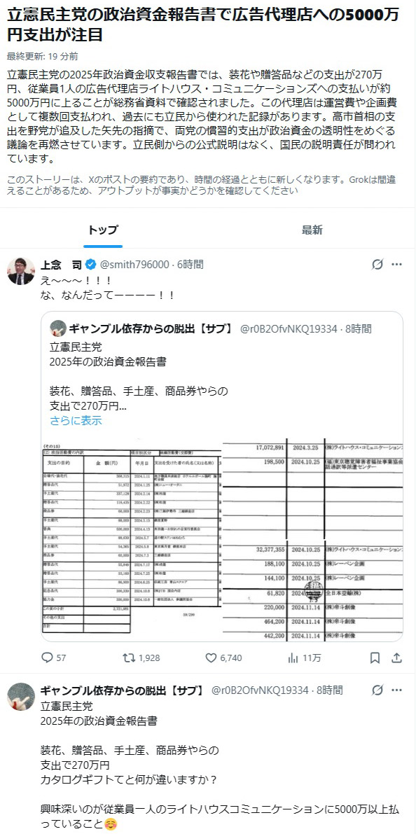 | … | 156無念Nameとしあき26/03/05(木)18:06:44No.1391777804+>参政党とか億集めてたけど問題無かったの? |