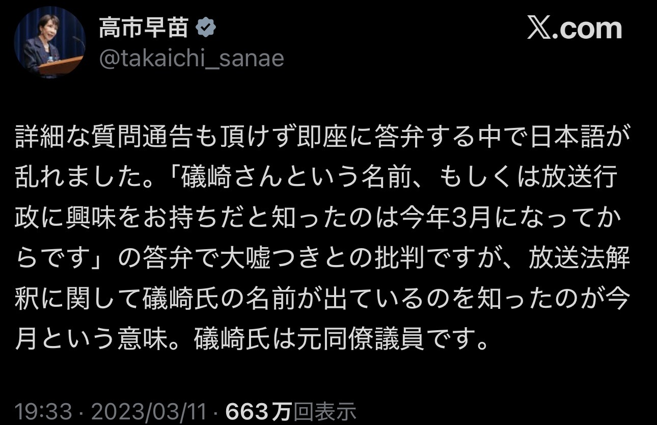 | … | 382無念Nameとしあき26/03/05(木)19:27:19No.1391796188+>息するように嘘をつく在日高市早苗 |
