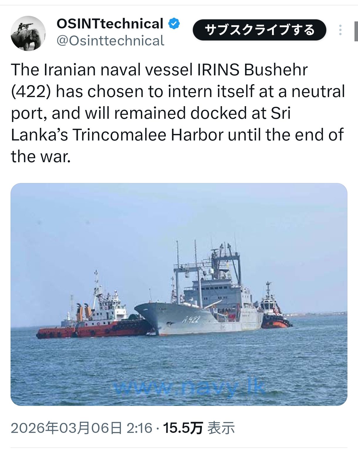 | … | 986無念Nameとしあき26/03/06(金)05:30:50No.1391891863そうだねx37割が拿捕か撃沈とか闇の船団の総数を知ってるお前は何者なんだ |