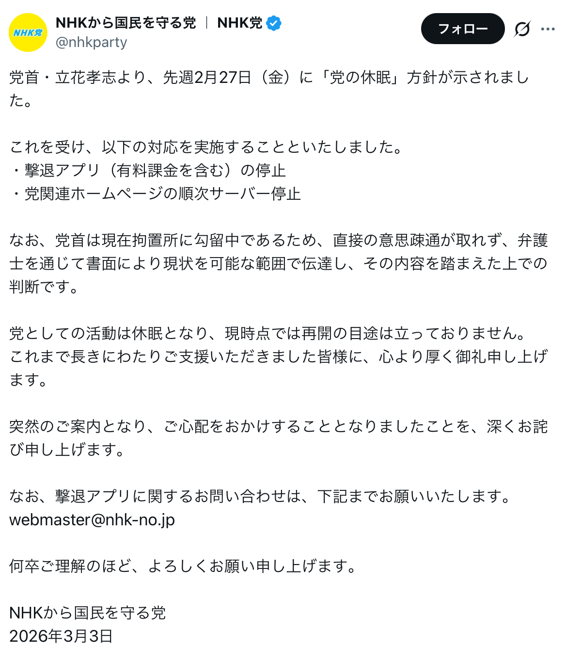 NHK党を休眠して保釈請求通そうとしたのに信者にパフォーマンスだと暴露されたおじさん