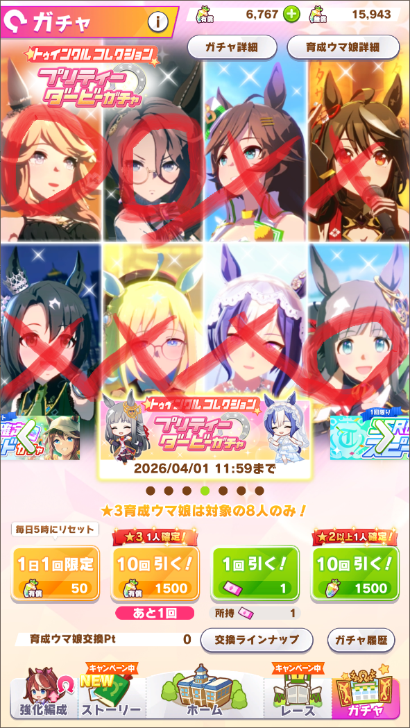 | … | 77無念Nameとしあき26/03/07(土)07:50:11 IP:160.249.*(spmode.ne.jp)No.1392121650そうだねx3「ウマ娘1日1回10連ガチャ無料キャンペーン」2026年3月8日(日)4:59まで |