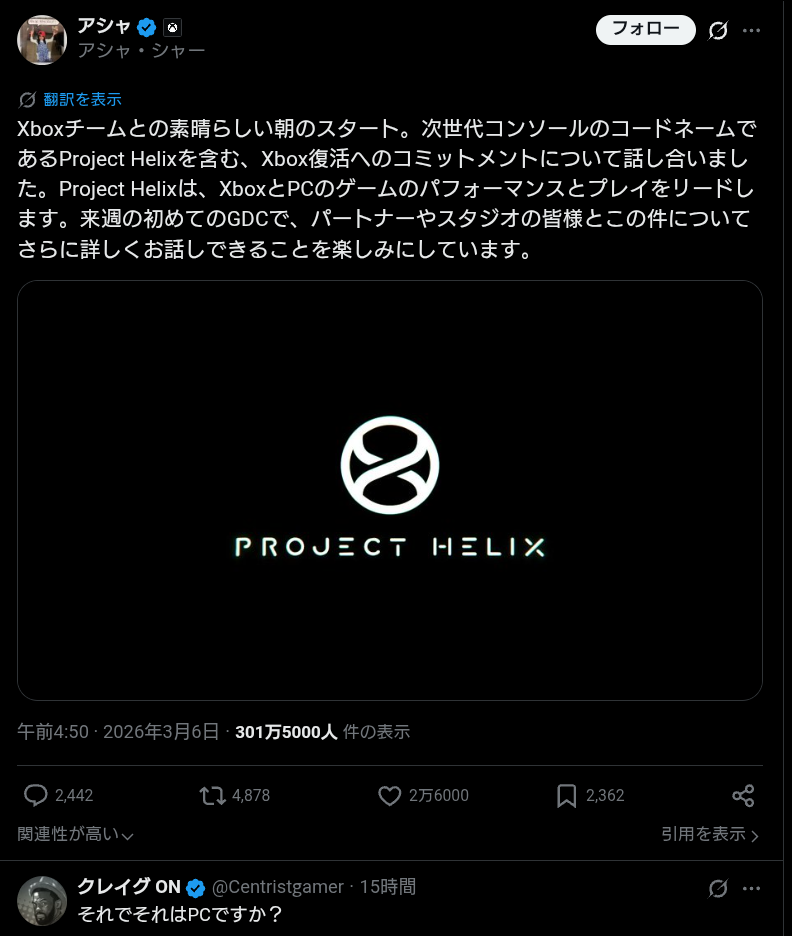 | … | 102無念Nameとしあき26/03/07(土)10:11:35No.1392140538+>これが本当ならMSだけでなくPCベンダー各社からXboxというブランドの名の下に |