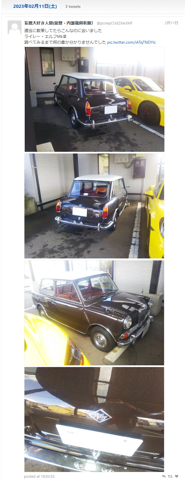 | … | 178無念Nameとしあき26/03/07(土)16:48:54No.1392220072そうだねx2>えっこれ知らん人の家の駐車場に入って写真撮ってんの?(ドン引き |