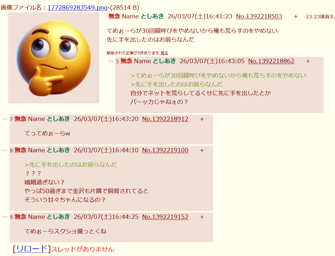 | … | 215無念Nameとしあき26/03/07(土)17:11:18No.1392224699+ 1772871078299.png-(231864 B) そう言えばヤマカン粘着もしてたらしいな「てめぉーら」くん |