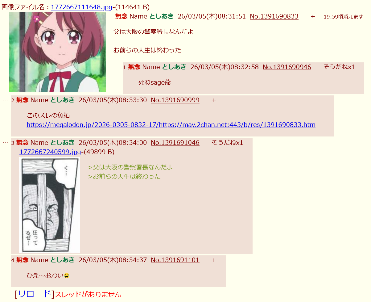 | … | 83無念Nameとしあき26/03/07(土)15:44:13No.1392206890+としあきはほんとのゴミには容赦しないからな |