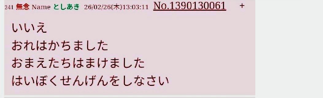 | … | 271無念Nameとしあき26/03/07(土)18:25:23No.1392240970そうだねx1 1772875523894.jpg-(206232 B) 勝ち負けにこだわる豚 |
