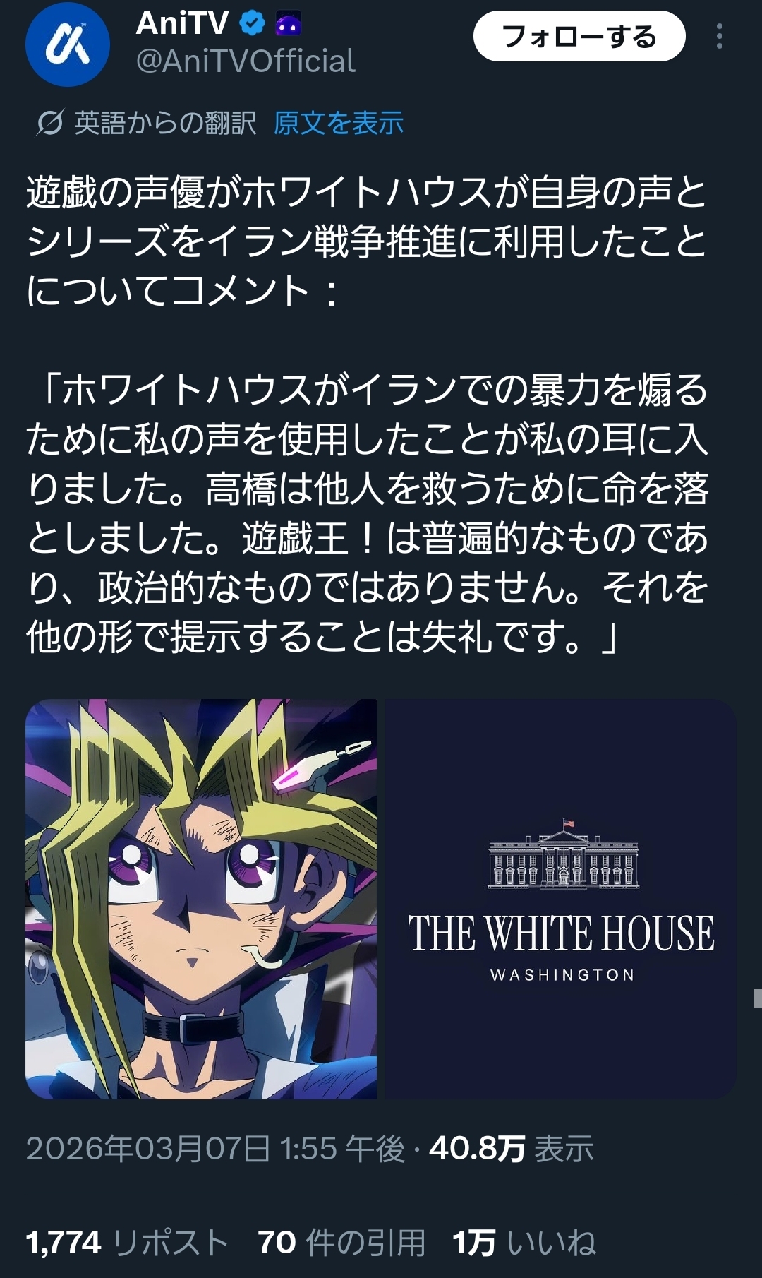 | … | 873無念Nameとしあき26/03/07(土)19:11:14No.1392252060+アメリカの政府機関前も日本のコンテンツを無断で政治利用してなかったっけ… |
