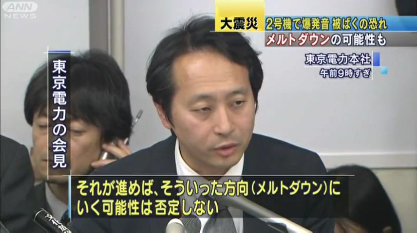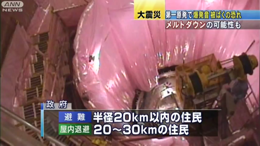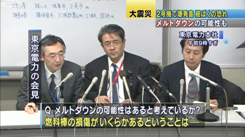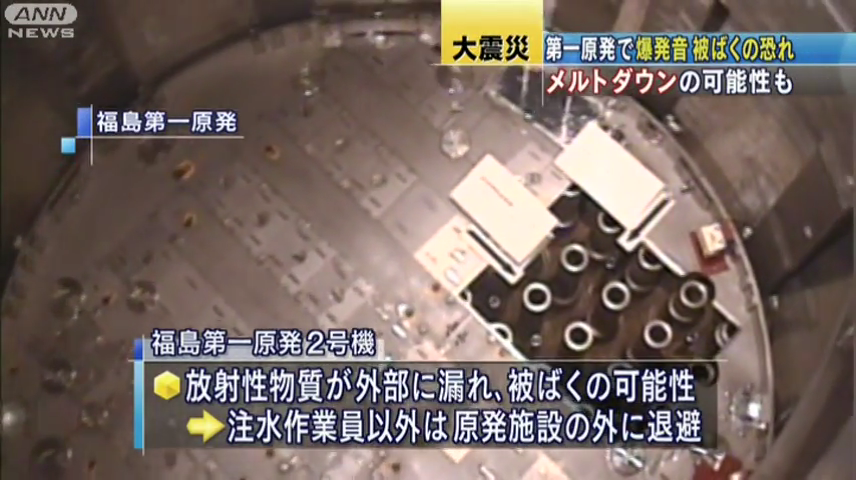 福島第一原発で15日朝、爆発音がしました。圧力抑制室が損傷し、外部に放射性物質が漏れている恐れがあります。燃料棒が溶けてしまうメルトダウンの可能性も否定できないということです。