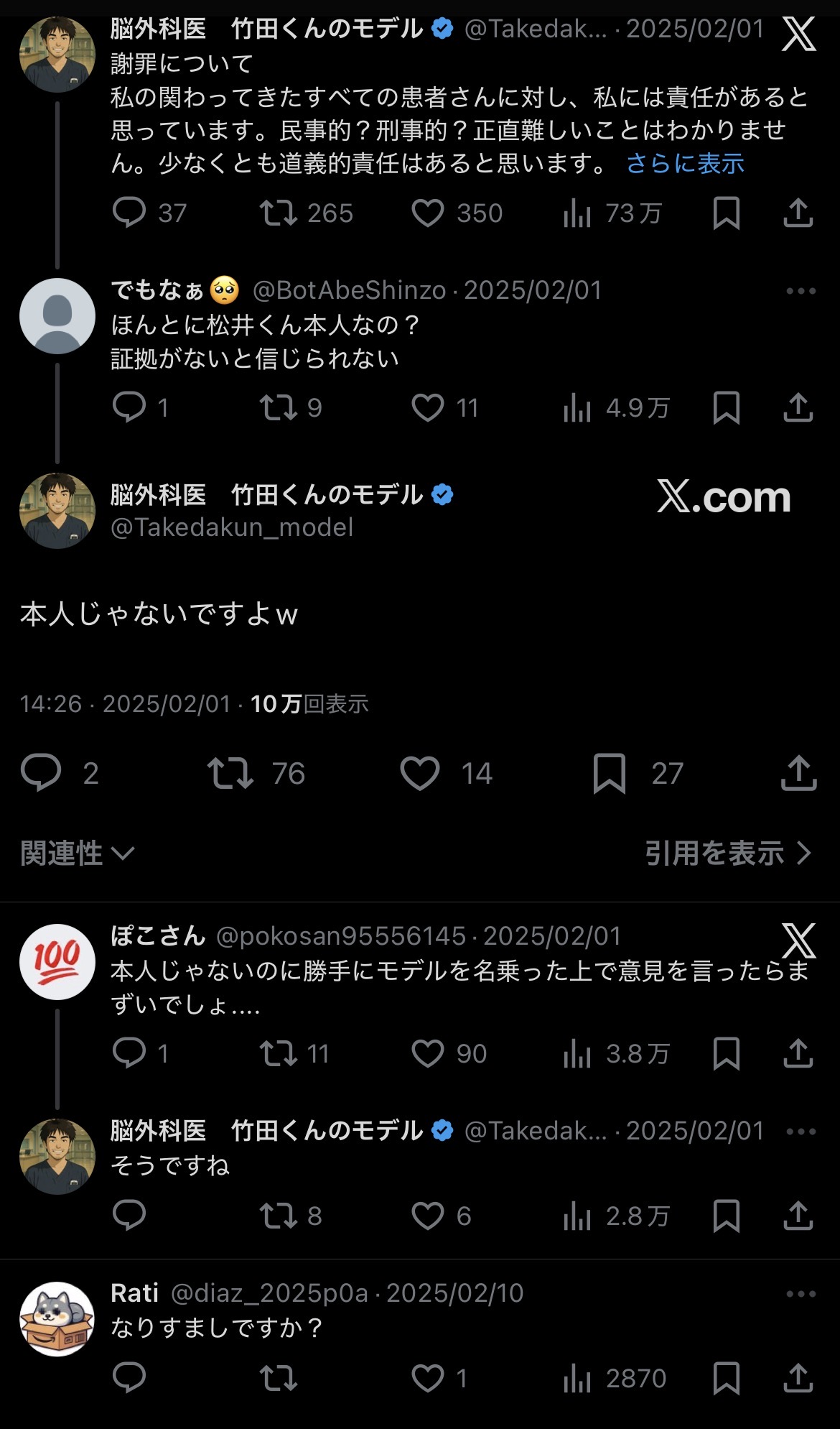 | … | 101無念Nameとしあき26/03/07(土)19:16:37No.1392253561+>>何度も言われてるけど医療ミスで免許を剥奪したことなど過去一度もないので |