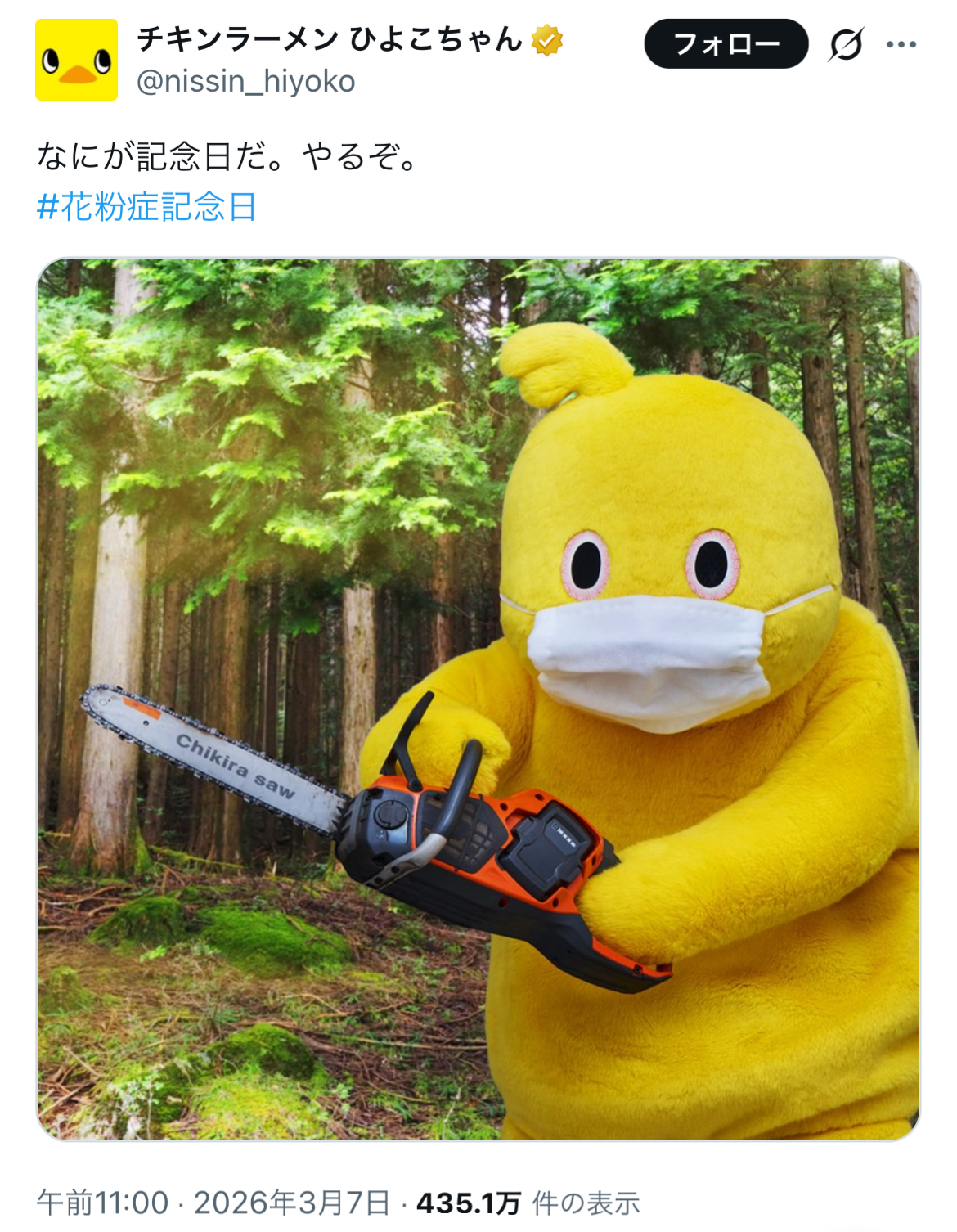 | … | 351無念Nameとしあき26/03/07(土)20:49:01No.1392282751そうだねx1 1772884141439.jpg-(1424768 B) >今日は花粉症記念日!……公式には誰も制定していない |