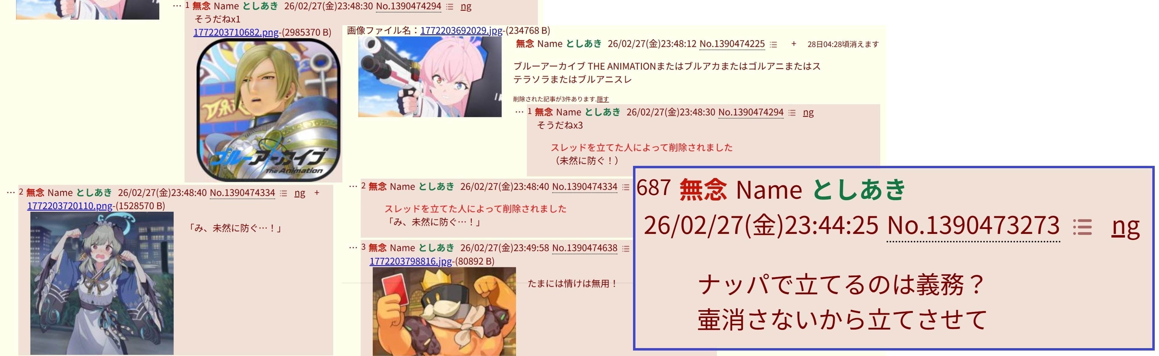| … | 527無念Nameとしあき26/03/07(土)23:43:36No.1392336330+最近はブルアカからミームが生まれてないわね… |