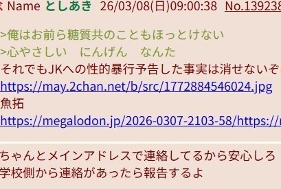 | … | 13無念Nameとしあき26/03/08(日)15:34:30No.1392471871そうだねx4>粘着ヤンデレホモストーカーの立てたスレ |