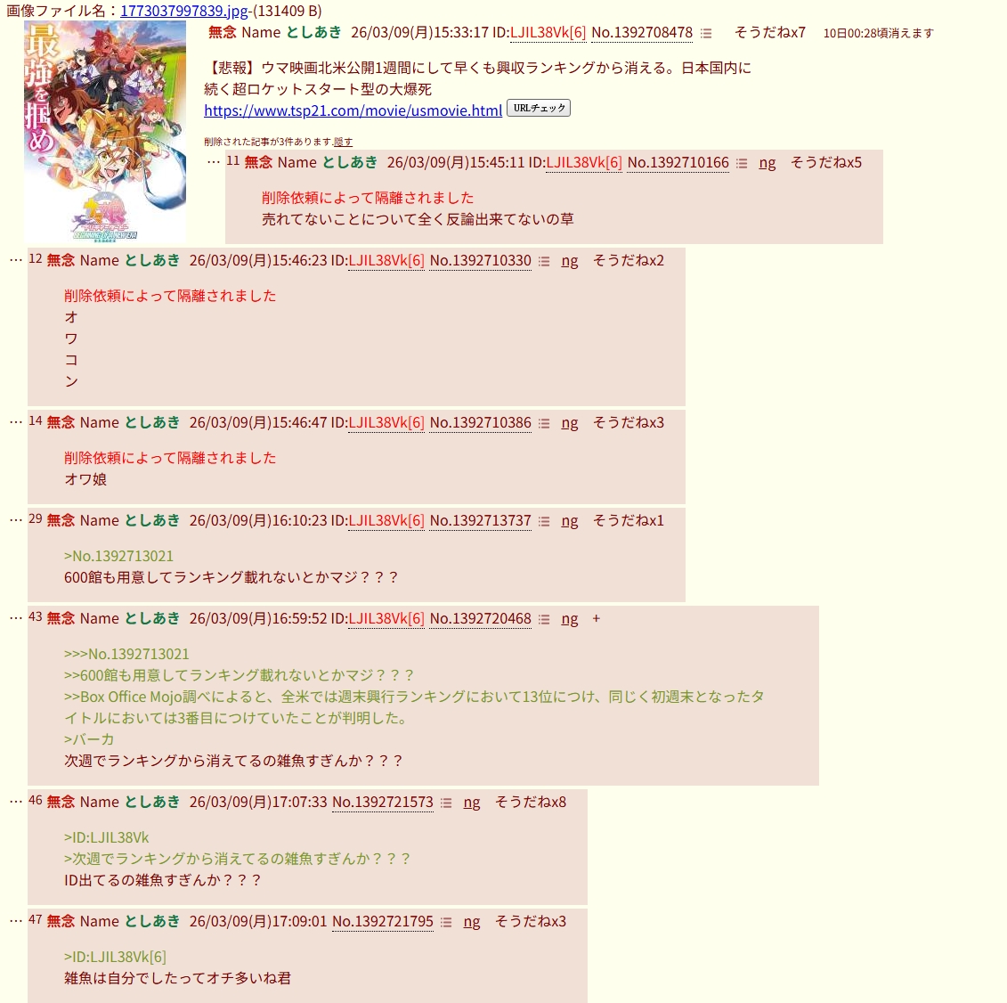 | … | 46無念Nameとしあき26/03/09(月)17:07:33No.1392721573そうだねx10>ID:LJIL38Vk |