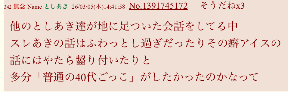 | … | 84無念Nameとしあき26/03/09(月)21:33:24No.1392784092そうだねx4>他のとしあき達が年代トークで盛り上がってるの見て |