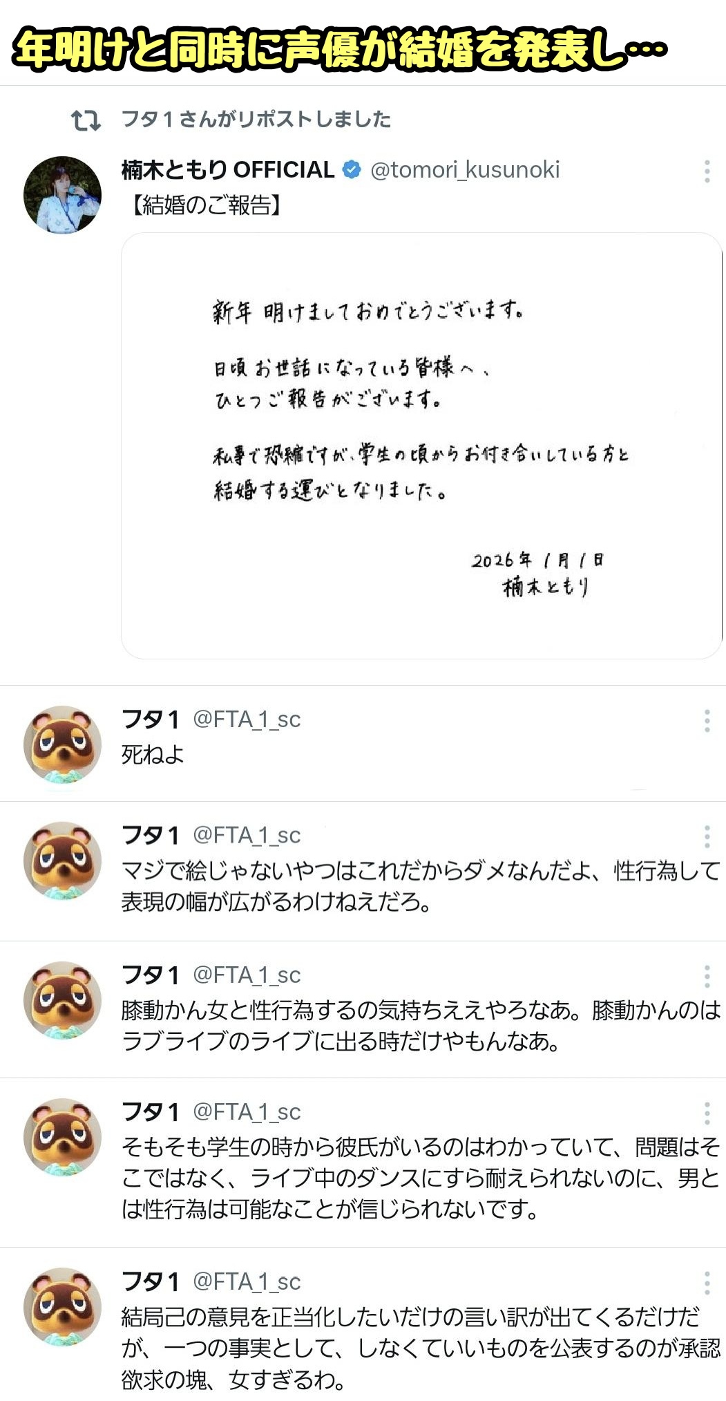 | … | 198無念Nameとしあき26/03/10(火)02:51:55No.1392840569+>若手声優は裏でやりまくりなのに |