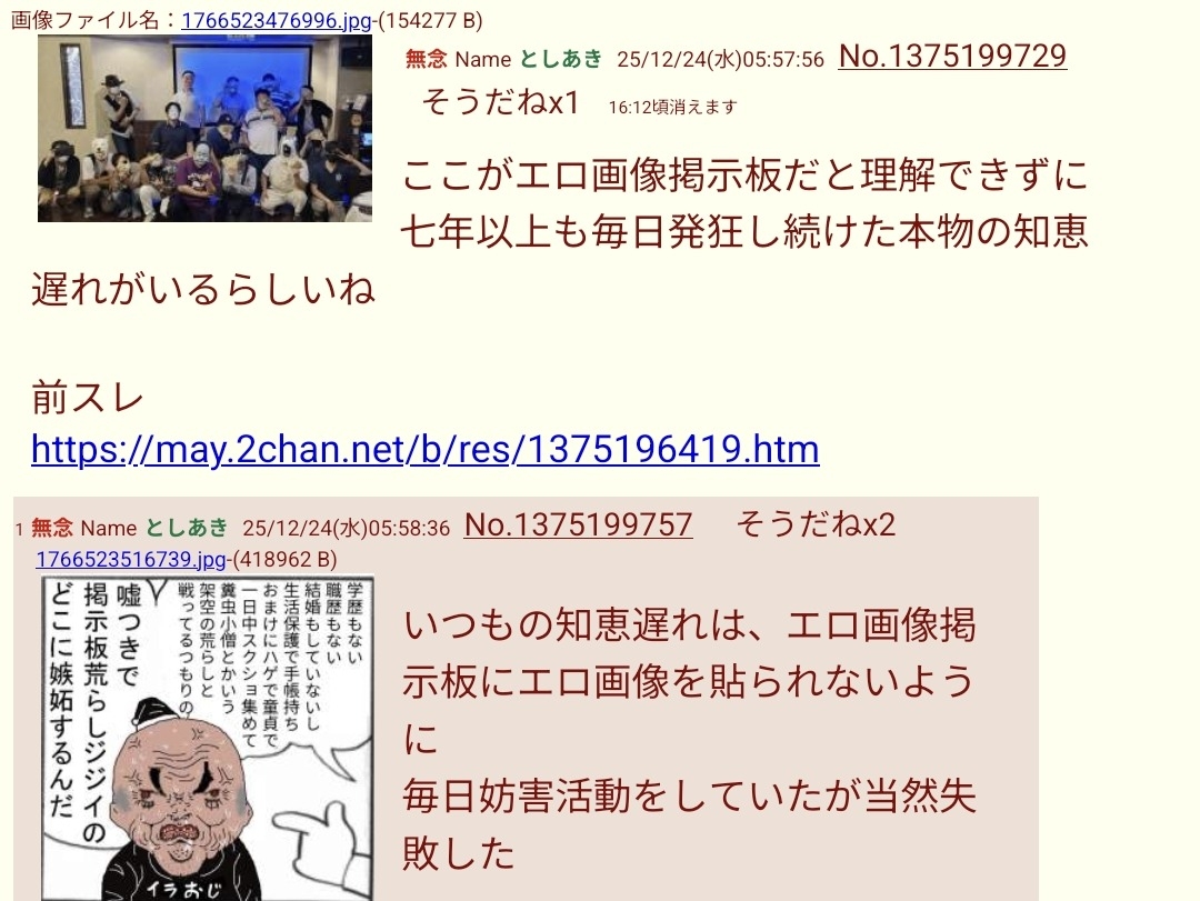 | … | 17無念Nameとしあき26/03/09(月)22:10:33No.1392795619+つーか普通に考えて荒らしスレのオフ会に参加するとかヤバいだろこいつら |