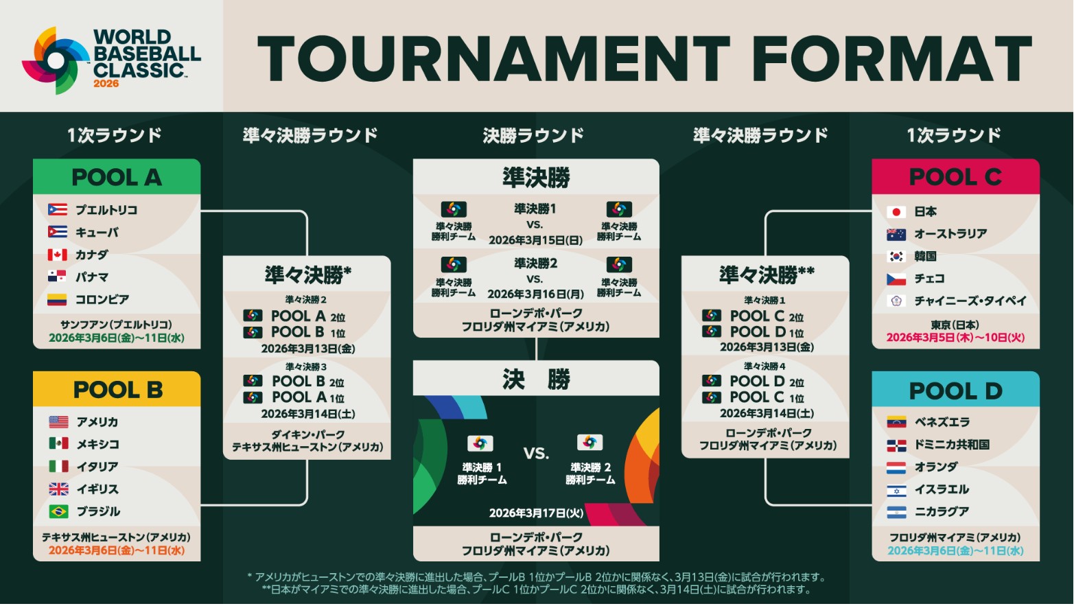 | … | 14無念Nameとしあき26/03/09(月)22:29:05No.1392800833+アメリカ・日本・ドミニカの三強のうちアメリカだけ決勝でしか試合しなくて済むってずっこくね? |