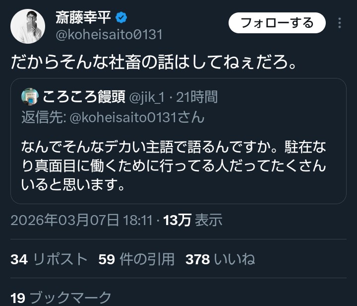 | … | 33無念Nameとしあき26/03/09(月)23:21:55No.1392813745そうだねx1>存在しない知人をでっち上げて高市サゲやってるだけじゃないの? |